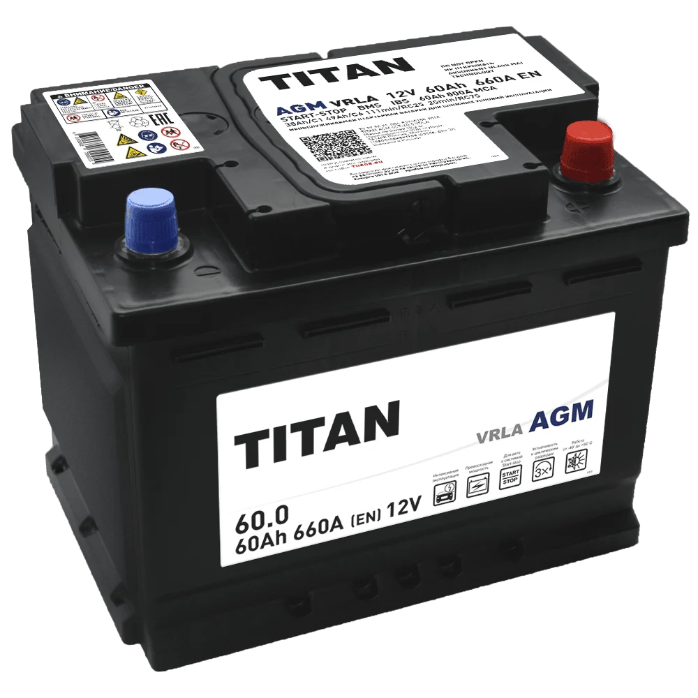 Автомобильный аккумулятор TITAN AGM 60Ач обр. пол. 660A 242x175x190